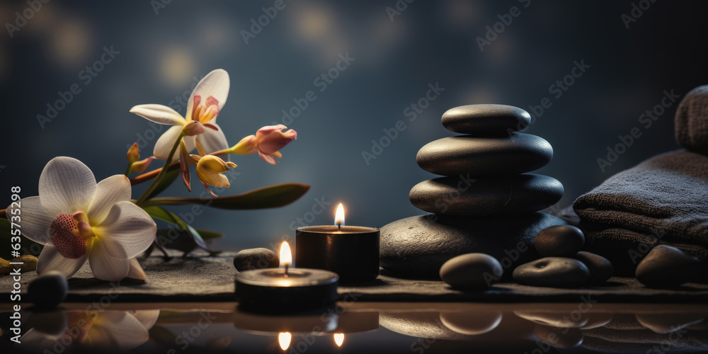 Obraz do SPA - Moody picture of a zen inspired spa scene with candles on a dark background #635735298