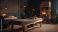 • Massage table. Stylish room interior with massage table in spa salon, 3d render. Decor concept. Real estate concept. Art concept. Design concept. Interior concept.