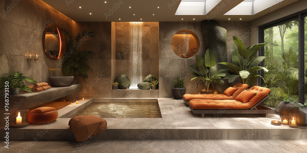 Obraz do SPA - Interior of wellness center. Modern and luxury spa salon. Atmospheric lights in a room with... #768793150