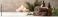 • Essential oils and spa tools in calm setting close up, focus on, copy space, tranquil color scheme, Double exposure silhouette with gentle breeze