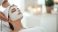 • A beautician applying a white clay mask to the face of a beautiful young woman in a beauty salon, emphasizing spa treatments and relaxation. photo
