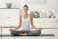 • Health concept. Young beautiful woman does yoga exercise in the modern room