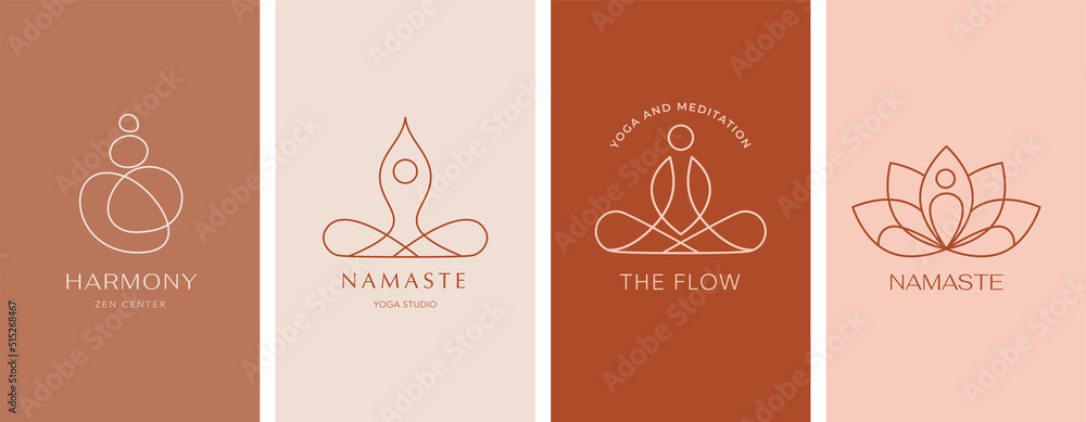 Obraz do Szkoły Jogi - Collection of Yoga, Zen and Meditation logos, linear icons and elements. Bohemian style... #515268467