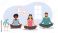 • A group of people is doing yoga, meditating in the hall. A woman and a man do gym synchronously. Vector graphics.