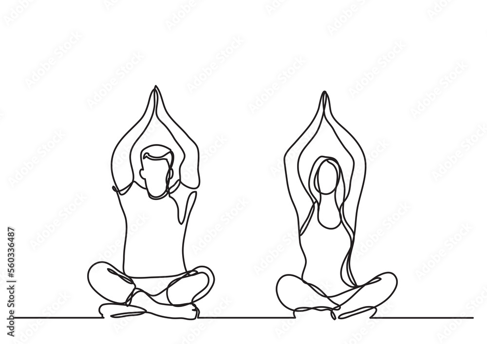Obraz do Szkoły Jogi - continuous line drawing man woman doing yoga - PNG image with transparent background #560336487