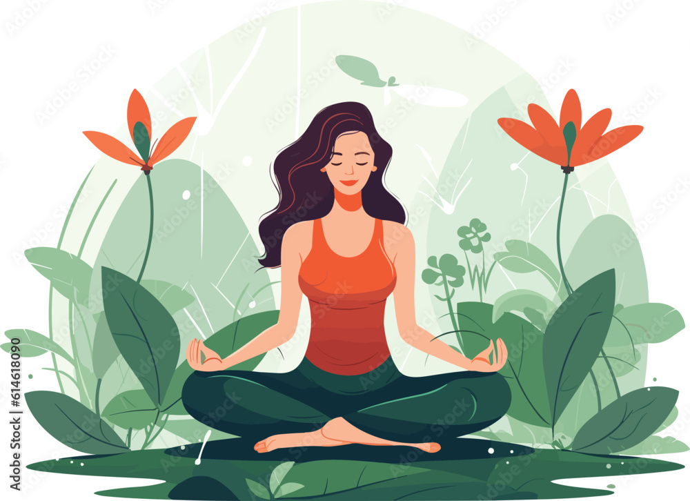 • beautiful girl doing yoga illustration, international yoga day, yoga day banner, yoga day background