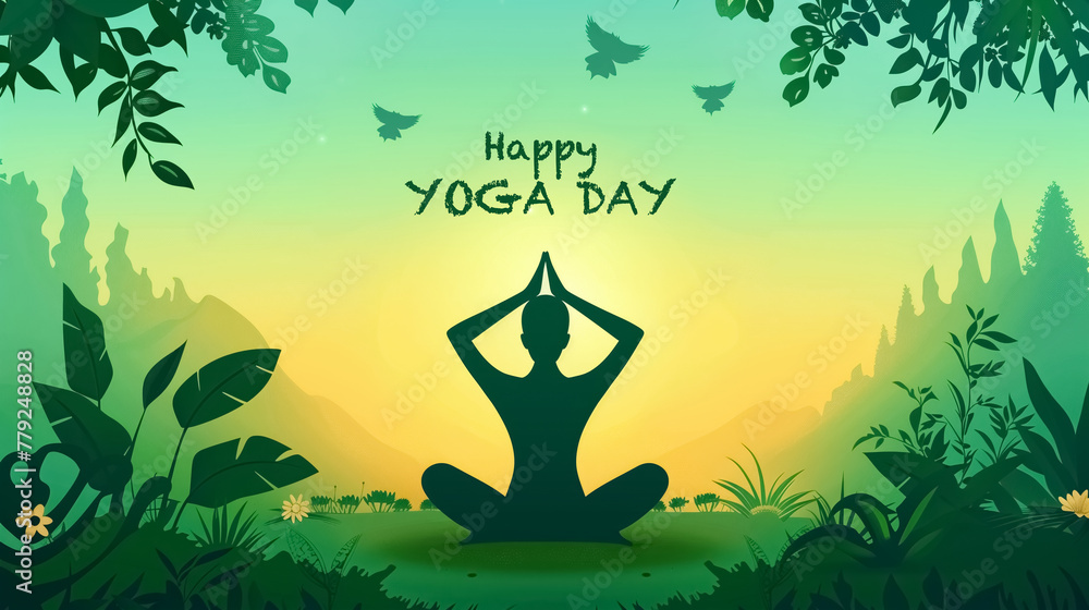 Obraz do Szkoły Jogi - International Yoga Day poster, illustration of a woman doing yoga exercise and pose, Yoga day... #779248828