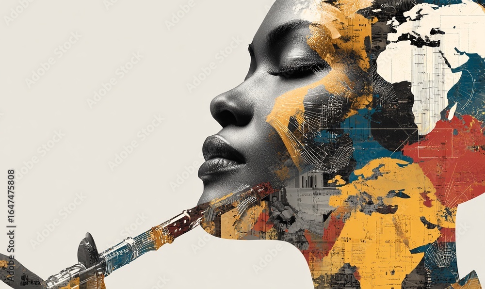 • KOBIECY PROFIL, ABSTRAKCYJNE MALARSTWO, TWARZ W KOLORZE SREBRA I ZŁOTA