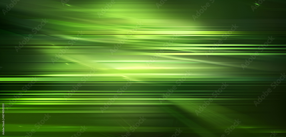 Obraz Abstrakcja - Dynamiczne, abstrakcyjne zielone tło z poziomymi smugami światła. Koncepcja technologii, energii... #1674050350