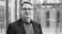 • Mężczyzna w okularach i marynarce na tle nowoczesnego budynku