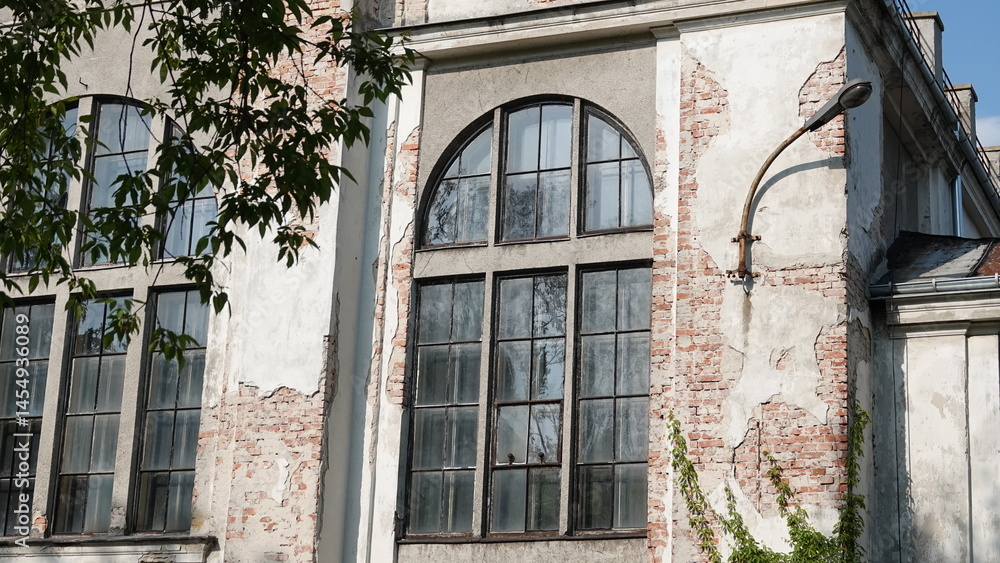 Obraz Architektura - Stary budynek z dużym oknem i latarnią zamocowaną na elewacji budynku #1454936089
