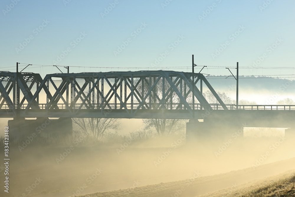 Obraz Architektura - Most kolejowy we mgle #1834123182