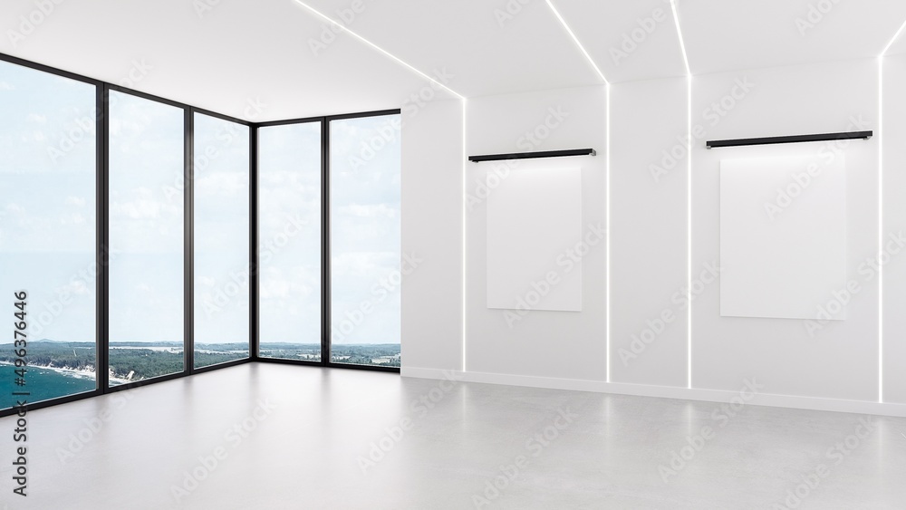 Obraz Architektura - modern white interior with two blank posters for presentation #496376446