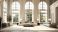 Luksusowy i elegancki salon z wysokimi oknami i zasłonami