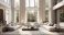 Luksusowy i nowoczesny salon z wysokimi oknami i zasłonami