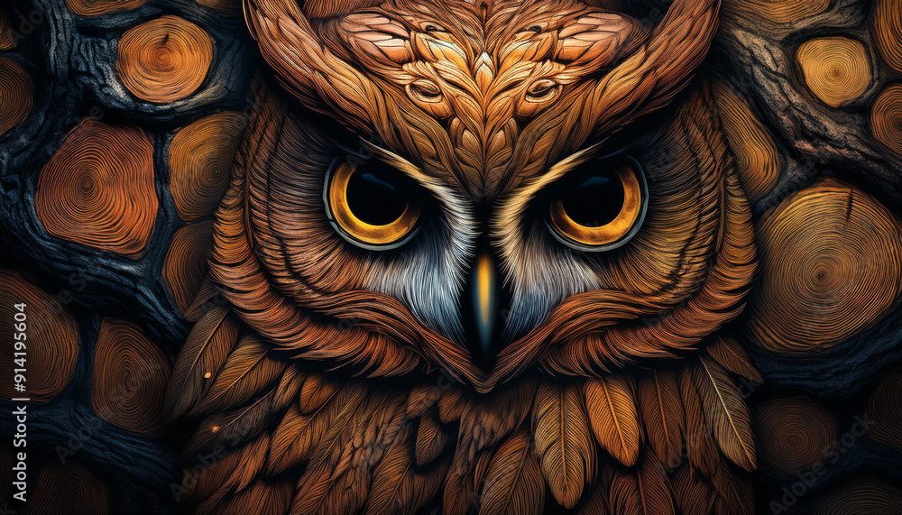Obraz Architektura - Sowa z drewna, tekstura tapeta, dekoracja generative ai #914195604