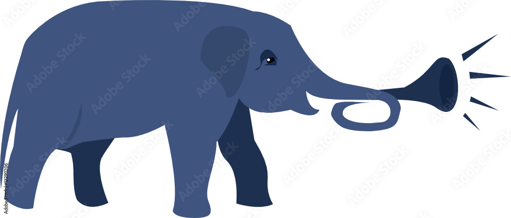 Obraz Instrumenty Muzyczne - Słoń trąbi na trąbce, trąba w kształcie trąbki, koncert dla zwierząt #12290206