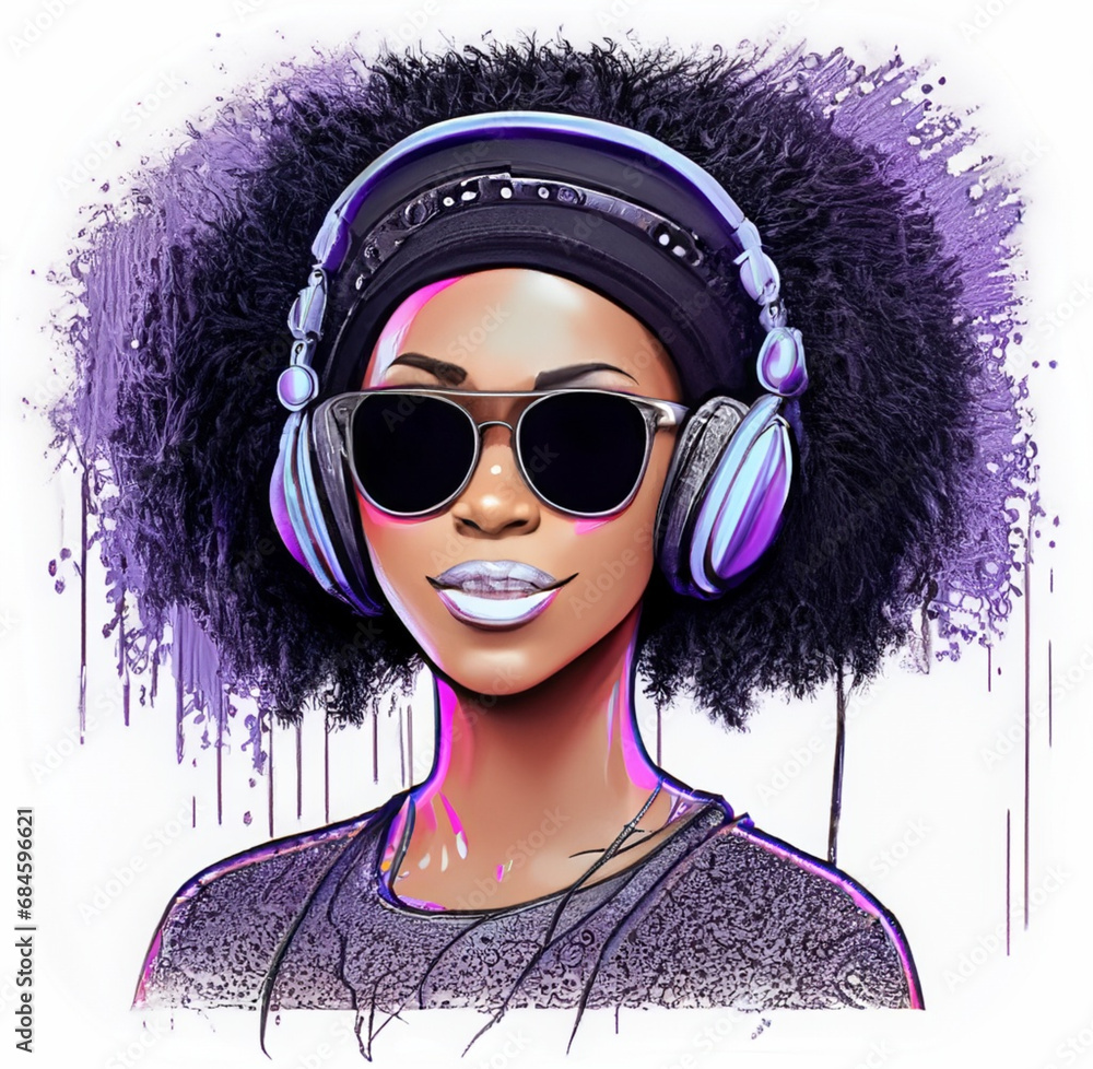 Obraz Instrumenty Muzyczne - Kobieta ze słuchawkami na uszach ilustracja #684596621