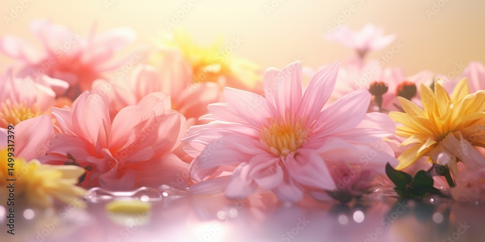 Obraz Kwiaty - Pastelowe chryzantemy w miękkim świetle #1499317379