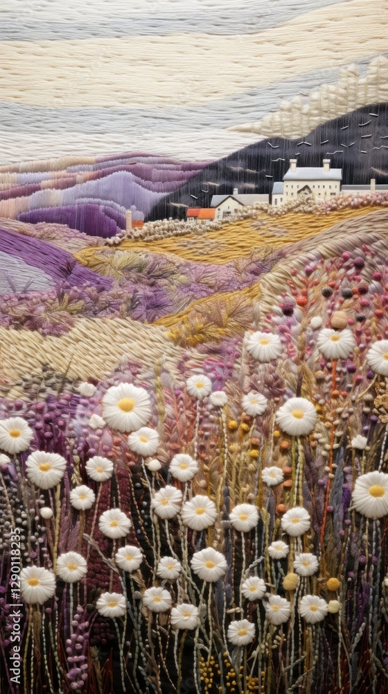 Obraz Pejzaże - Embroidery of scottish landscapes flower pattern plant. #1290118235