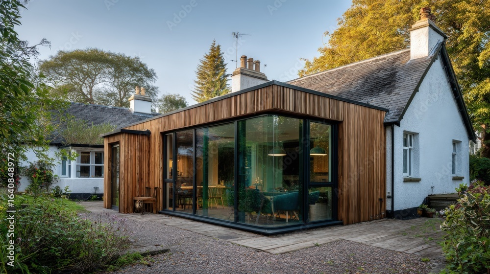 Obraz Pejzaże - Modern Extension on a Traditional Cottage with Glass and Wood Architecture Blending Contemporary... #1640848972