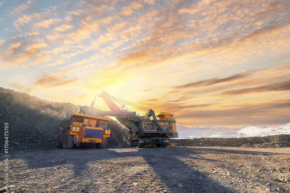 Obraz Pejzaże - Open-pit coal mining in winter sunset landscape #1706473705