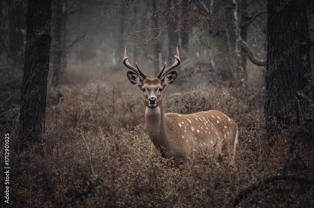 Obraz Pejzaże - Untamed deer roaming through woodland #1712901025
