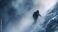 • Lone climber ascends a treacherous snow covered mountain slope amid harsh winter winds and fog