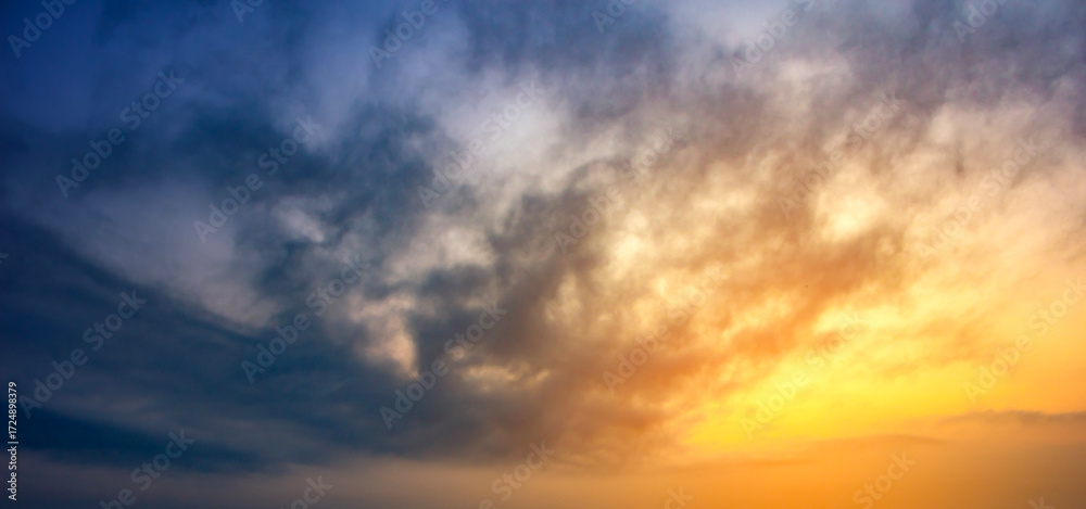 Obraz Pejzaże - Sunset sky with clouds. Panoramic view of the sky. #1724898379