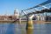 • Millennium Bridge connects the north and south banks of the Thames. St. Paul's Cathedral rises majestically in the background on a clear day, showcasing London's skyline.