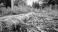 • Sharp focus on recycled landscape fabric edge showing natural fibers rest of the garden and mulch fading softly to highlight biodegradable weed control material.