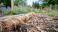 Obraz Pejzaże - Sharp focus on recycled landscape fabric edge showing natural fibers rest of the garden and mulch... #1734944095