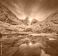 Obraz Pejzaże - Vibrant orange and red sunrise illuminating snow-covered peaks, reflecting on the icy surface of... #1768754427