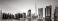 Monochrome city skyline with tall skyscrapers reflecting on calm water under a cloudy sky, Dubai Marina bay UAE od 0,00 zł Dopasuj i kup Dekor szklany