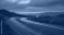 • Highway at Dusk with Car Light Trails, City Lights, and Mountains in the Background