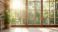 • Morning light shining through windows of forest cabin creates serene atmosphere