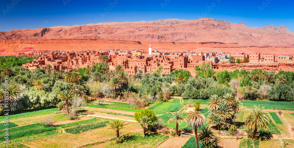Obraz Pejzaże - Tinghir, Morocco. Old berber architecture in Todra Oasis, Tagounsa village in Atlas Mountains. #1780351587