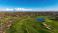 • Aerial perspective of a golf course, showcasing green landscapes and fairways, urban density