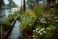 • Street rain garden with plants and stormwater drainage, showcasing green infrastructure solutions for urban environments