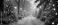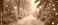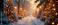 • Christmas background banner with a winter alley among snow-covered fir trees with christmas lights in soft garland light