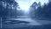 Obraz Pejzaże - Golden sun shines across golf course at twilight. Tall pine trees frame beautiful scene.... #1799546661