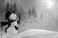 Obraz Pejzaże - Cute smiling snowman with red scarf and hat with a broom in his hand. Winter fairytale.Merry... #1806856806