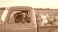• Turkey with sunglass in blue pickup, pumpkins in the back, pumpkin field. Concept of autumn harvest, transportation, Thanksgiving holiday theme