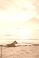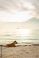 • Puppy stray dog on beach sea coast at sunset. Soft light