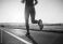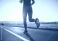 Obraz Pejzaże - Athletic woman running along country road with vibrant sunset light #1831364012