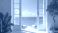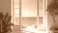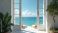 Bright interior view opens to blue ocean expanse with clear sky and fluffy clouds. Two loungers await on sunny terrace by sea. Rich green plants frame this tranquil vacation paradise. od 0,00 zł Dopasuj i kup