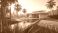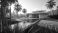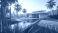 Modern tropical villa. Exterior photo shows white house with pool. Tall palm trees surround building. Sun shines on green grass. Luxury vacation home located in nature. od 0,00 zł Dopasuj i kup Dekor szklany