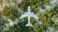 • Aerial view of a lush green forest with a clearing in the shape of an airplane, conceptual image representing sustainable aviation and eco-friendly travel in nature