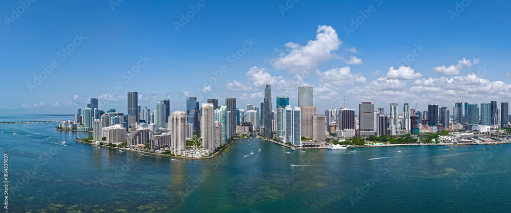 Panorama of Brickell in Miami. Brickell skyline on a sunny day. Panorama view of Brickell. Brickell famous panorama. Miami downtown landscape. od 0,00 zł Dopasuj i kup Naklejka