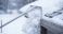 • Snow removal with a roof rake clearing fresh snow from the rooftop. Snow accumulating on roof demonstrates winter weather conditions and snow maintenance.